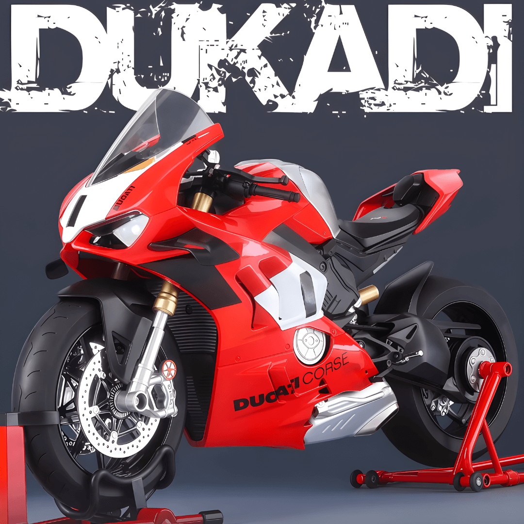 杜卡迪 Panigale V4R 仿真模型 完全把賽道靈魂濃縮在你桌上!最震撼的地方就是它的 啟動引擎聲效+後輪高速轉動——按下啟動鍵後,V4R 那種高轉速的聲浪直接炸出來,後輪瞬間狂轉,整個臨場感直接拉滿,好像在原地熱車一樣。